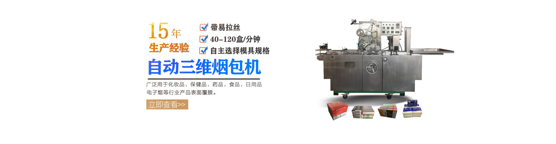 三維包裝機(jī)、封切包裝機(jī)、多功能封口機(jī)、真空包裝機(jī)、灌裝機(jī)、旋蓋機(jī)、貼標(biāo)機(jī)